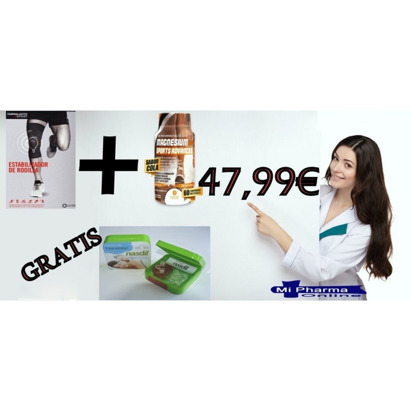 Estabilizador de Rodilla Farmalastic Sport + Magnesio Sport Advance 60 Com, Sabor Cola.
